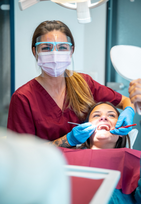 Regelmäßige Kontrolltermine sowie die Durchführung der Professionellen Zahnreinigung (PZR) in unseren Zahnarztpraxen sind wichtige Bestandteile für nachhaltig schöne und langfristig gesunde Zähne.